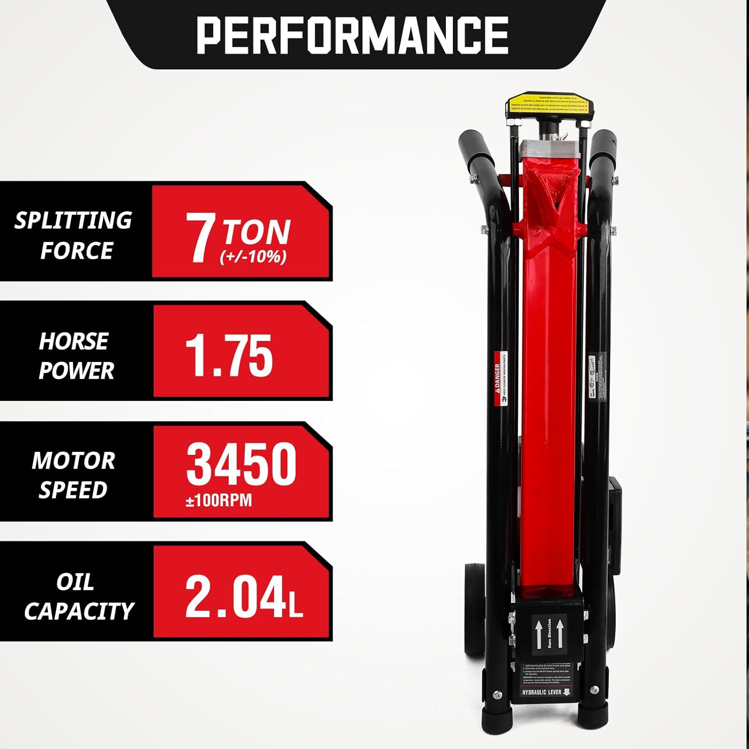 【POWERFUL MOTOR FOR EFFORTLESS CUTTING】 The PowerSmart electric hydraulic log splitter boasts a 15 Amp induction motor with 3500 rpm. ensuring stable performance. The 7-ton hydraulic system easily splits larger logs into firewood. Durable steel construction ensures reliable use for years to come.