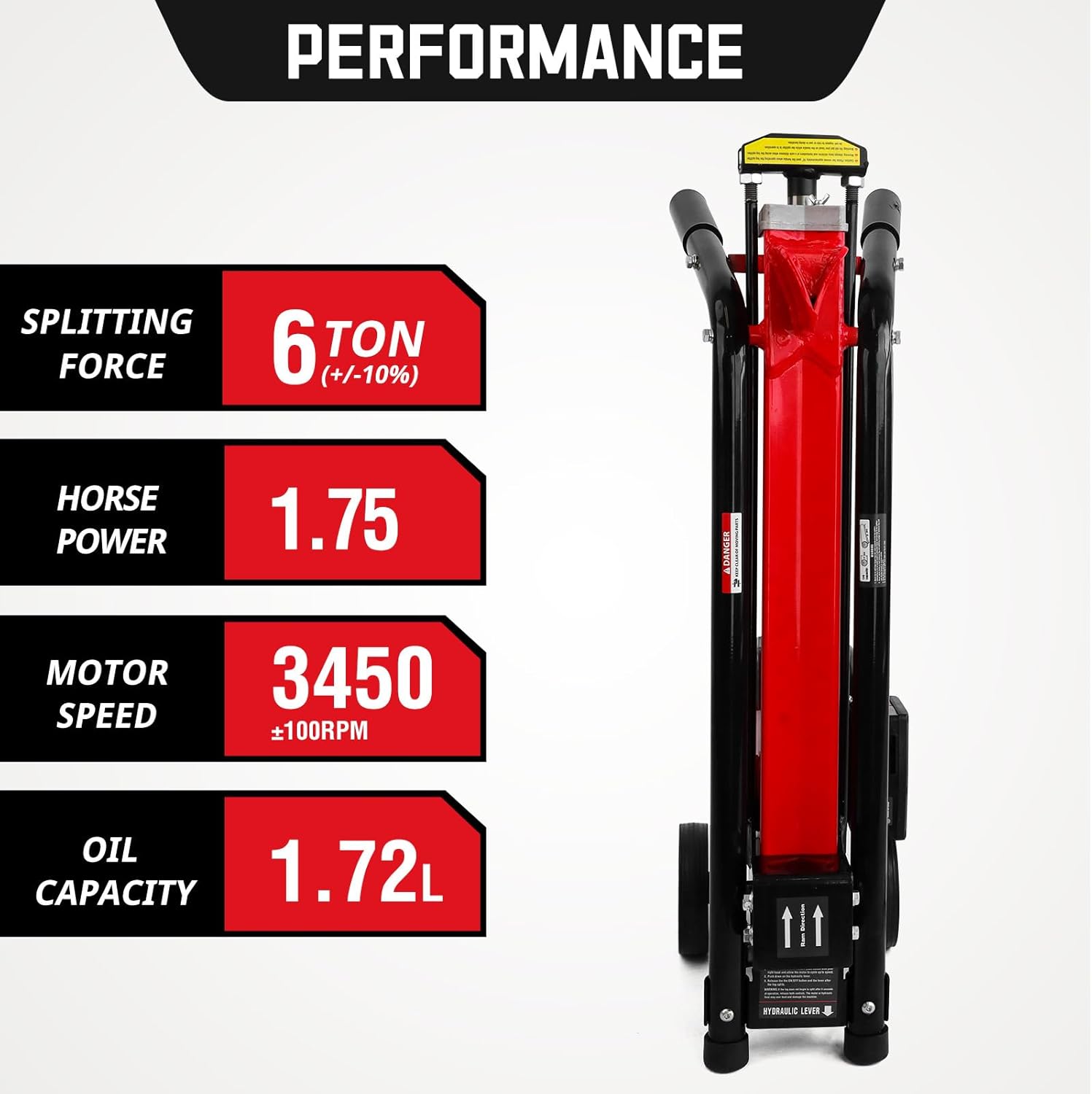 - 【PORTABLE & EASY TO TRANSPORT】 The sturdy. wide rear wheels and compact size (37.4*10.6*18.5 inches) make this splitter easy to transport and store. The strong handle conquers any terrain. such as sand. mud. or uneven roads.