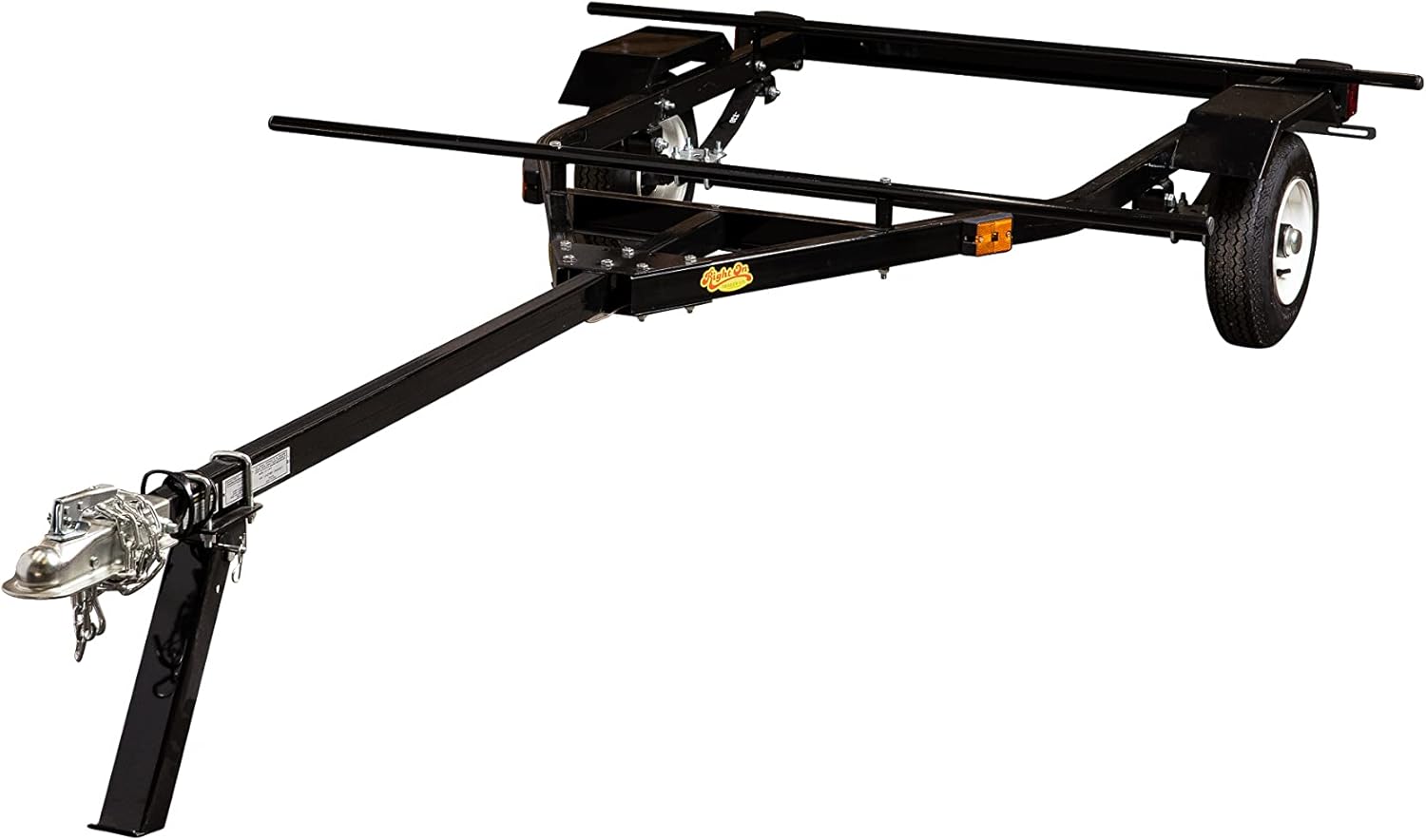 New for 2023! Improved corrosion resistance through new powder coat process. Larger and stronger 2″ ball hitch coupler. Longer 65″ round crossbars. Simplified and improved trailer light wiring with quick-connects and dedicated grounding wire. Flat washers added to hardware kit. Prefect to put two fishing kayaks side by side. We also have accessories for this trailer like Rack Pads. Bike Racks. cargo boxes. and J-cradles. This is a high-speed trailer ready for interstate travel. Trailer has a super-strong frame but soft leaf spring to protect your load and prevent the trailer from bouncing.
